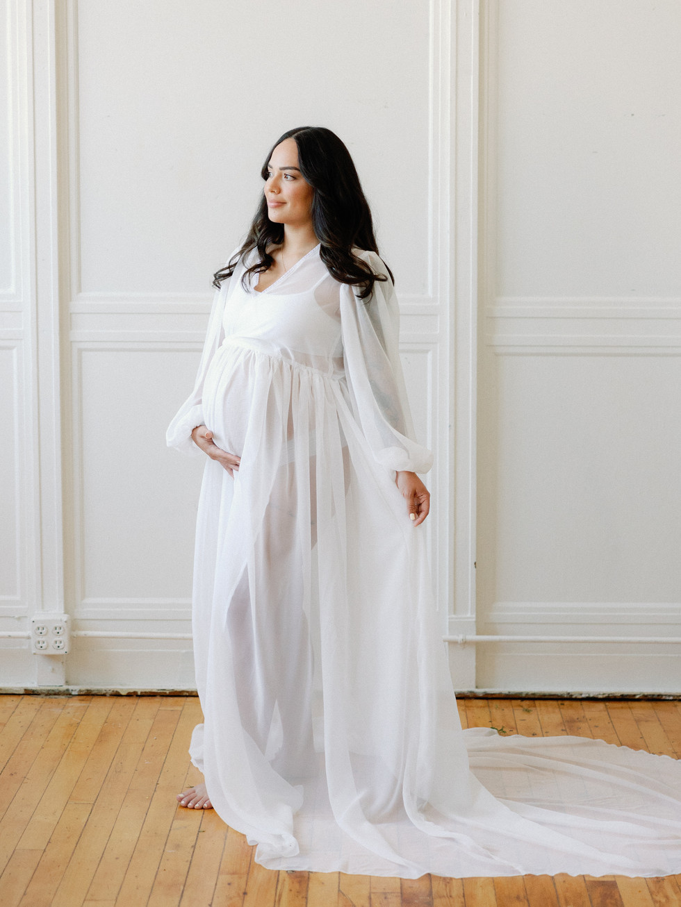 This maternity session is one for the books! Fellow moms and mama's-to-be, this one is 100% worth the read. Not only is this maternity photoshoot absolutely breathtaking but it was heartwarming to see my nephew and his beautiful wife Maria embrace their journey into parenthood! For those of you expecting, indoor maternity photoshoots are great for capturing the beauty of nature and are perfect for intimate, private settings in a controlled environment where photographers like Emily McColl and Becca Walker can solely focus on posing their clients. Emily and Becca found the perfect spot to shoot this indoor maternity session. We started the day at the Gentle Bull Studios where Maria jumped into Mane Duo Bridal's chair for hair and makeup. Not long after, I started flowering the studio using nature as their backdrop. Emily and Becca photographed Maria and Christian in natural light which added to the prettiness and serenity of things. This part of the photoshoot was intended to be more casual which provided comfort and a great level of privacy to capture the most stunning images of the mom and dad-to-be. A couple of outfit changes later and Maria showed off her baby bump holding a parasol of flowers. The maternity gowns were chosen based on elegance, style, and to accommodate Maria's growing belly. Lastly, we ended the session with some stunning flat lays consisting strictly of loose florals. Emily and Becca nailed the session and Maria was 🌟 glowwwwing! 🌟